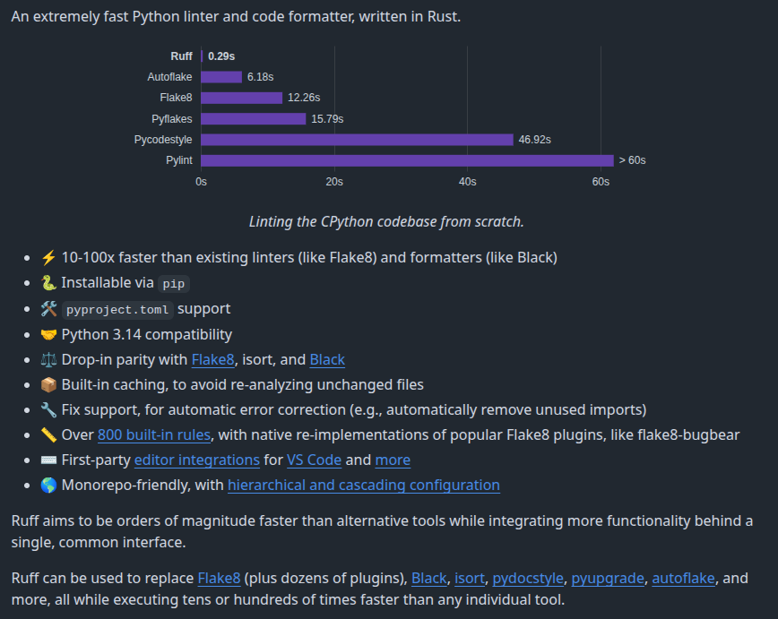 ty-> extremely fast Python type checker and language serverpytest -> estándar de facto para tests (framework/runner)