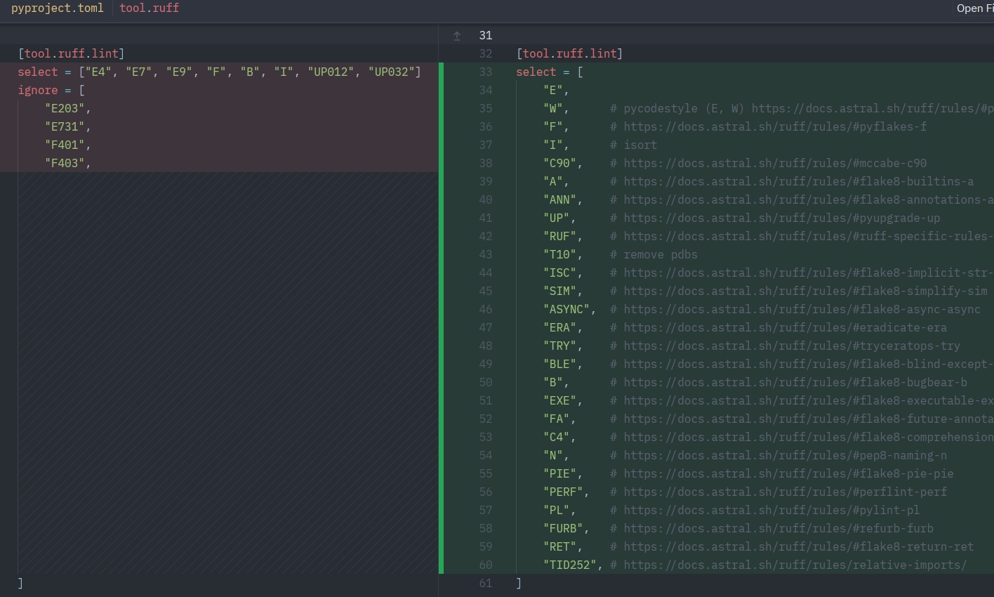 --fix: 100% confiable. Pero hacer PRs adhoc para no meter ruido.--fix --unsafe-fixes: confiables, pero leer la doc de la regla por corner cases y revisar con calma.🤖 «ejecutá ruff check –fix en los archivos modificados y corregí los errores que queden»